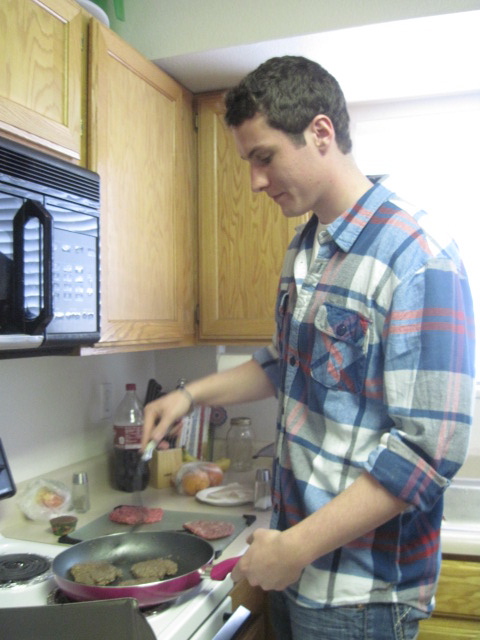 Then Sunday was our crazy Superbowl party!! And when I say crazy I mean CARAZAY!! We set out all the food and Sam started making our hamburgers . . .